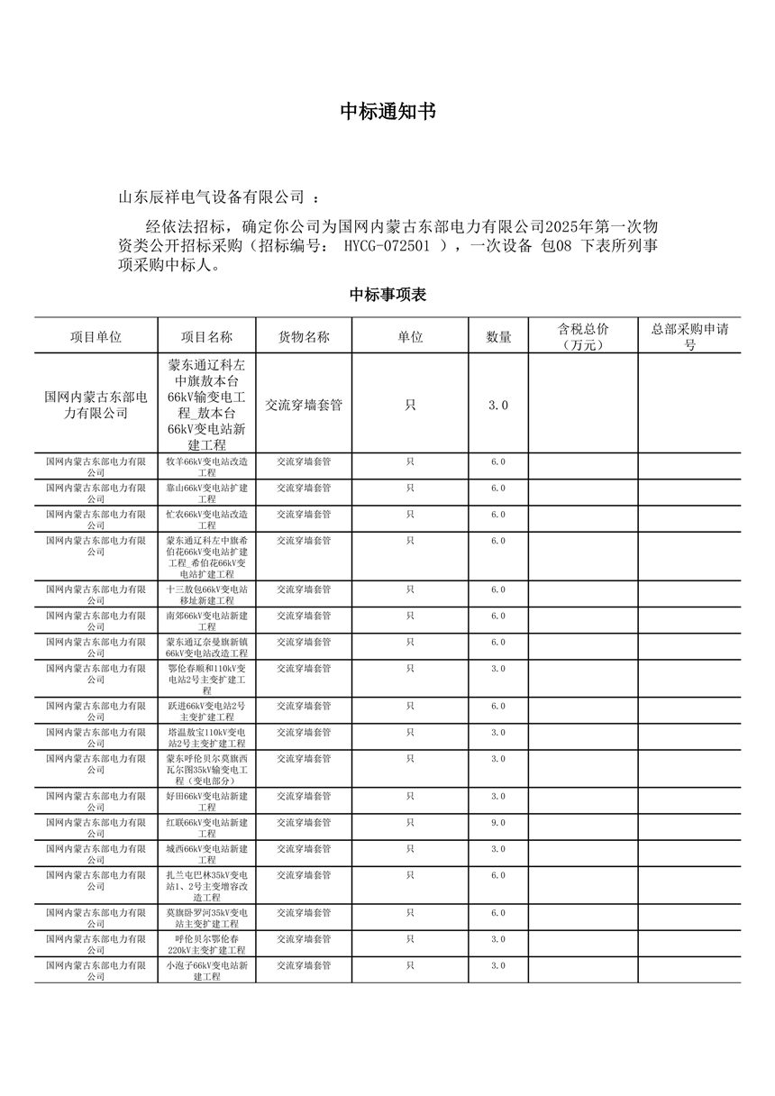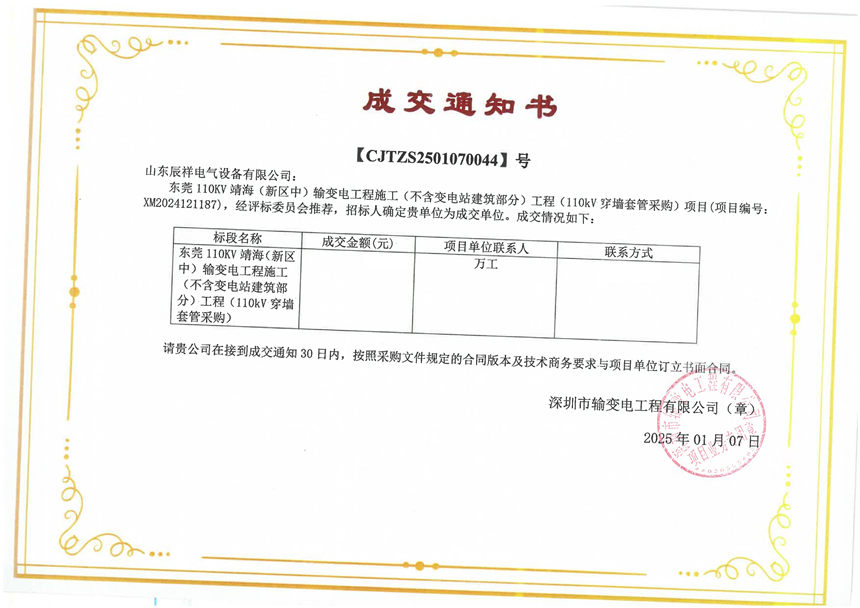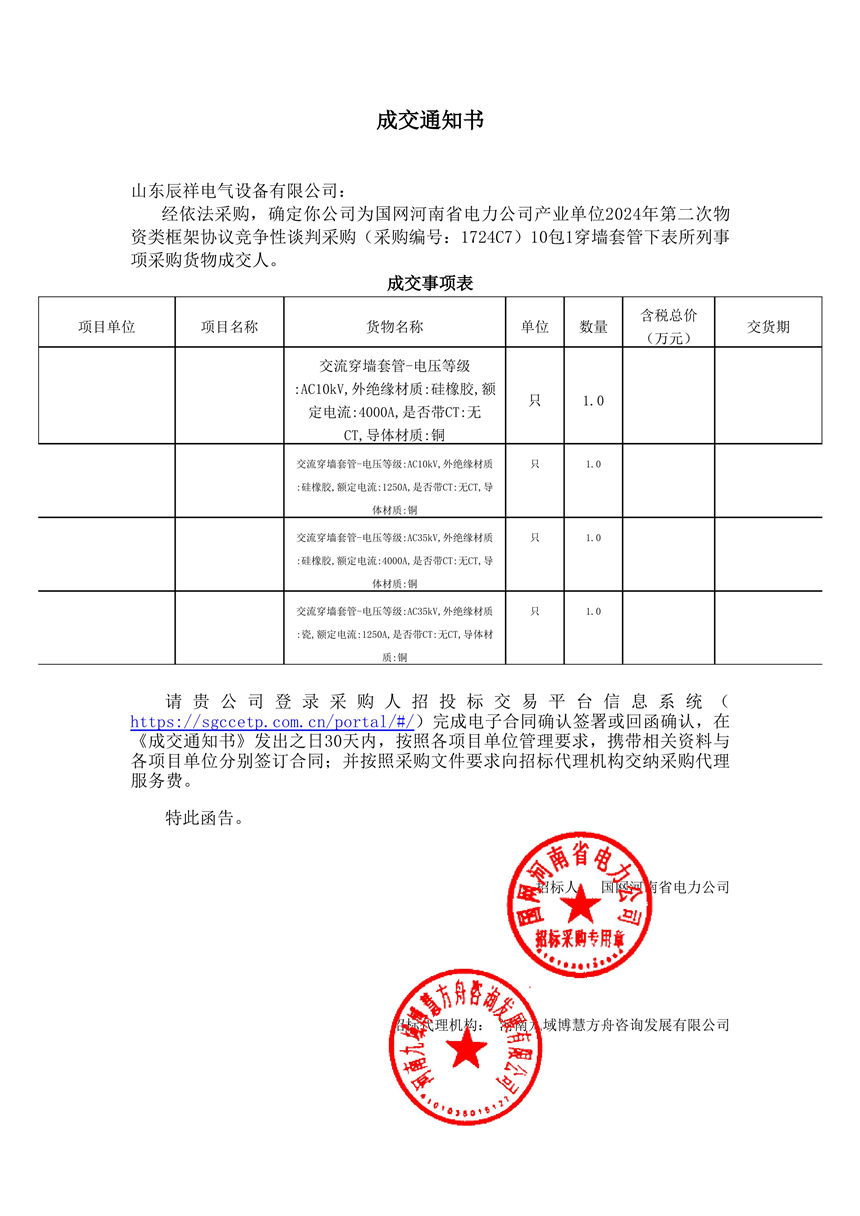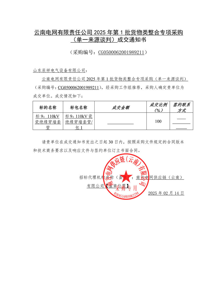 2025.02.14 110kV瓷絕緣穿墻套管中標通知書